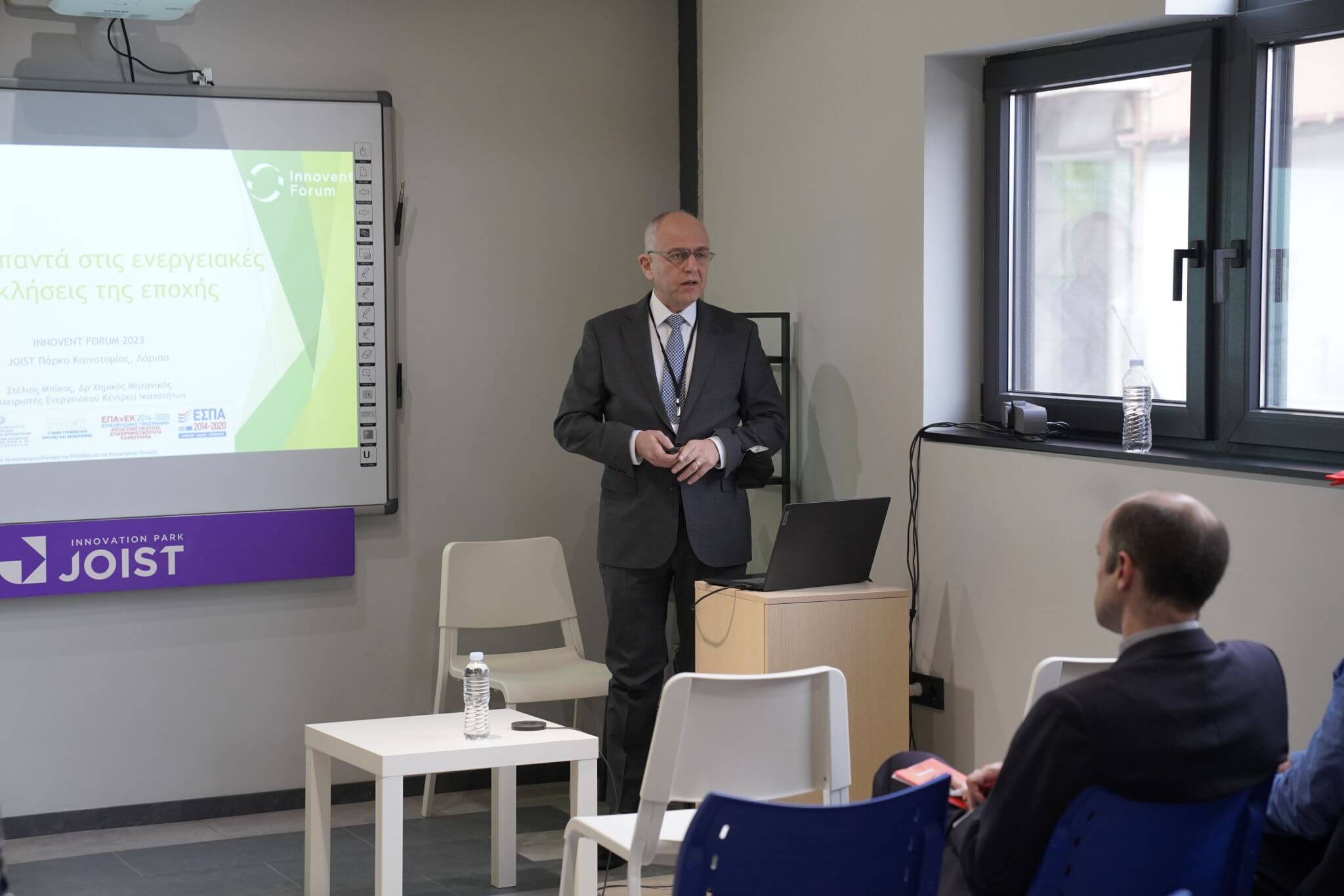 Ο Stelios Bikos, Διαχειριστής του Ενεργειακού Κέντρου Ικανοτήτων, παρουσίασε στους παρευρισκόμενους στο φετινό Innovent Forum στη Λάρισα για πρώτη φορά τις δράσεις που έχει αναλάβει το Κέντρο σε θέματα αιχμής για την Ενεργειακή Μετάβαση.